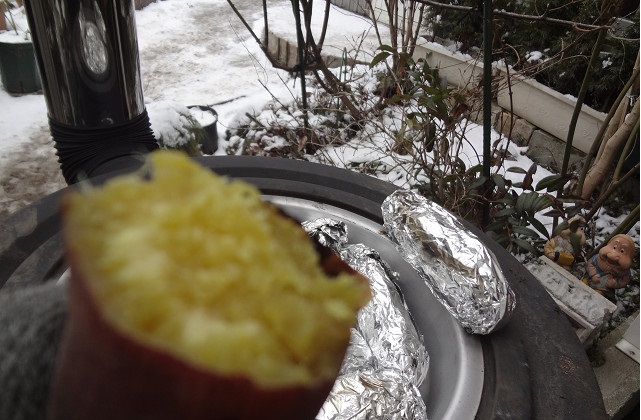 ストーブの上にさつまいもを置いてみんなでおいしく食べました